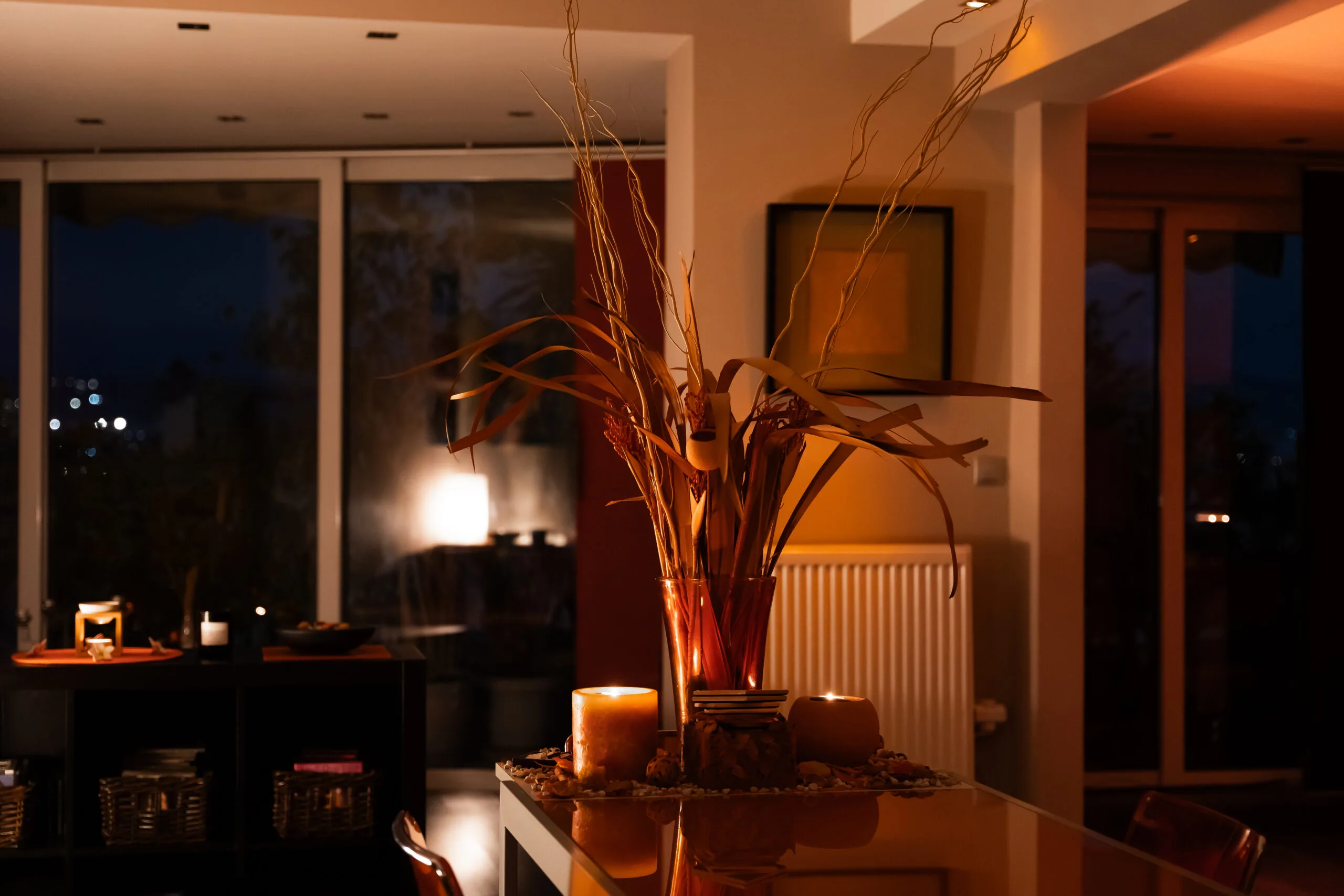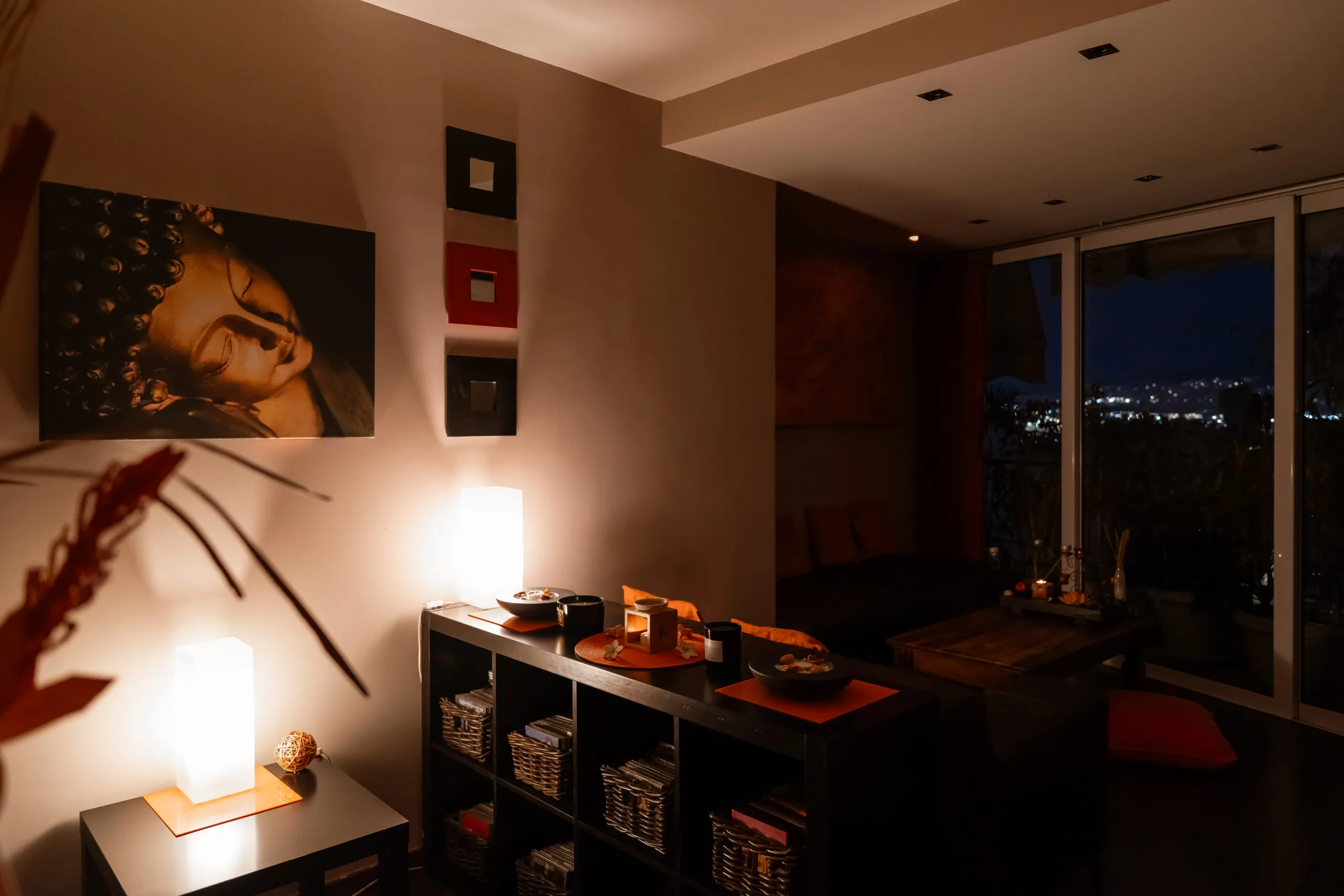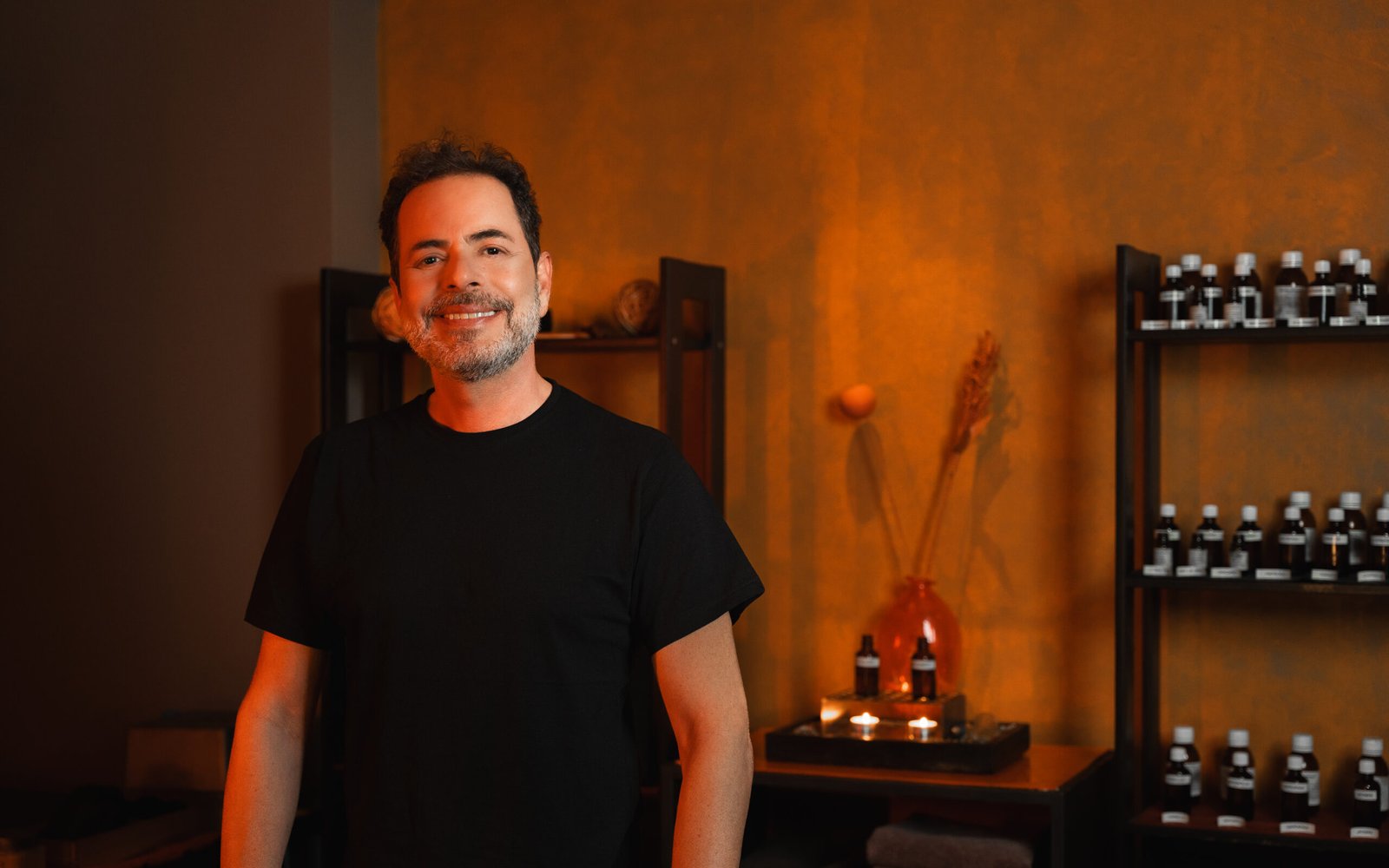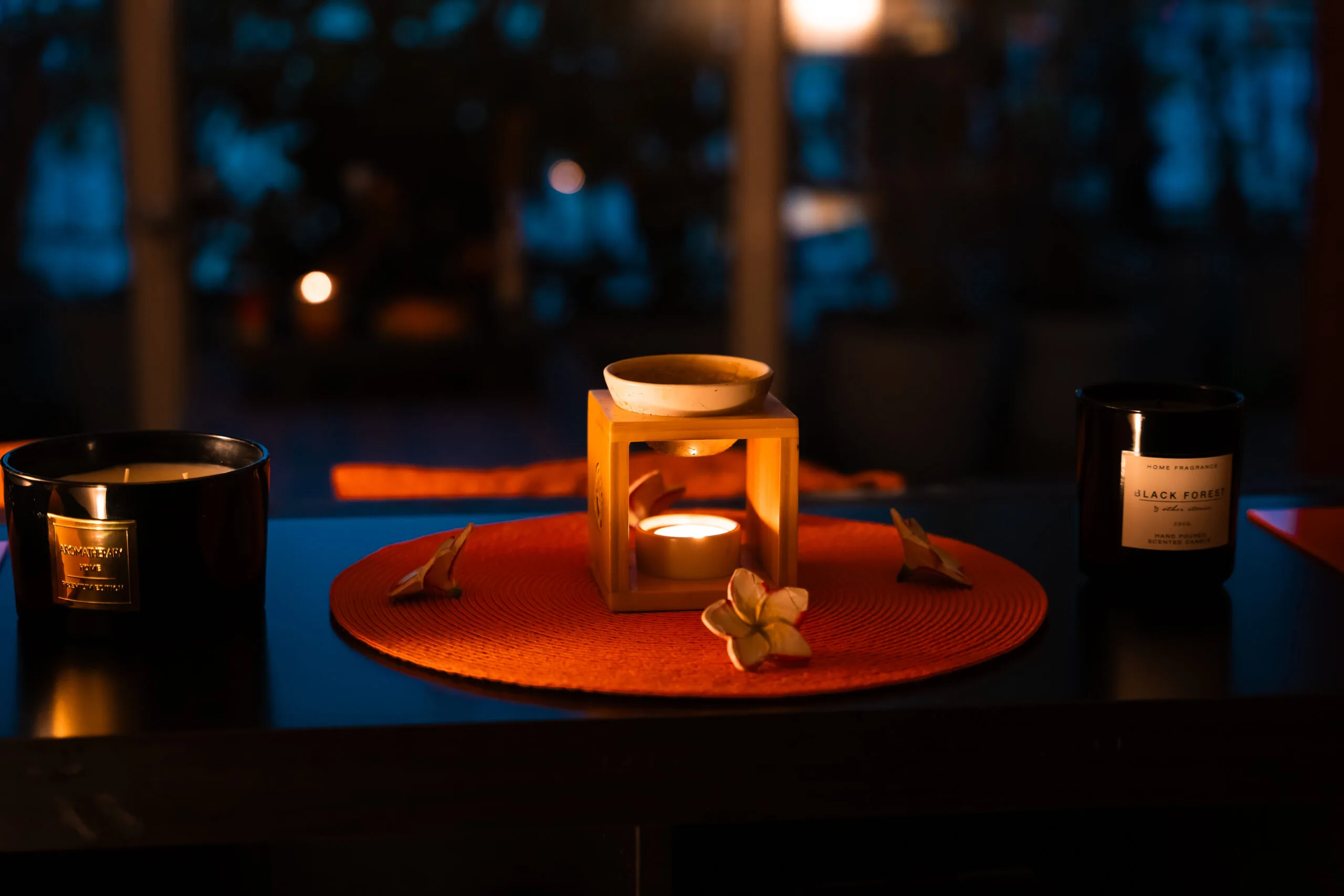 Color and smell are joined with the warmth of the candles and the calming music.